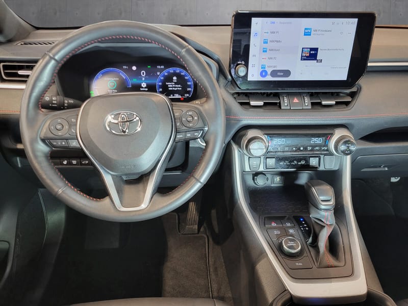 Flott RAV4 seljast. Med nesten 30-års erfaring med hybrid teknologi er dette eit driftsikkert og økonomisk valg. RAV4 er ein populær SUV med god køyreoppleving, automat og god framkommelighet med firehjulstrekk. Bilen har god plass innvendig og eit stort bagasjerom. Den har m.a. utstyr som nøkkelfri adkomst, adaptiv cruise control, lane assist, varme i ratt, DAB+ og elektrisk bakluke. Toyota Safety Sense sikkerhetspakke inkluderer m.a. auto fjernlys, kollisjonsvern med autobrems og fotgjengervarsling, skiltgjenkjenning og filskiftevarsling. Bilen har fullt servicehefte og alle servicer er tatt på Toyota merkeverksted. Toyota Relax inntil 10 års garanti! Få inntil 10 års garanti på denne Toyotaen med Toyota Relax!* Garantien vert gjeve årleg frå bilen er 4 år gamal, fram til bilen er 10 år gamal eller inntil 200.000 km (det som inntreff fyrst), ved årlig utført Toyota Originalservice hos ein autorisert Toyota-verkstad i Norge. *Les meir om vilkår på Link TOYOTA CERTIFIED PLUS - VÅRE BESTE BRUKTBILAR Velg tryggheit og kvalitet garantert av Toyota -kun tilgjengeleg hos Toyota merkeforhandlar. Våre TOYOTA PLUS bilar vert levert med: - Minimum 24 månadar garanti i heile Europa - inntil 1 000 000 km. - Kvalitetssikra og kontrollert gjennom TOYOTA CERTIFIED PLUS Kvalitetskontroll - 12 Månadar hybridbatterigaranti - gjennom vår UNIKE Toyota Hybrid Helsesjekk - 12 Månadar veghjelp - dekka i heile Europa gjennom Toyota Eurocare - 100 % fornøgd eller bytt bil (sjå eigne vilkår) - Dokumentert servicehistorikk - Tilgang på Toyota Finansiering og Forsikring - Tilbod om Toyota Originalservice Sjå meir på www.toyota.no/toyotaplus eller besøk oss i butikk! Kva er hybrid, og kvifor velge Toyota Hybrid? Toyota sine hybridar kombinerer saumlaust ein effektiv bensinmotor, el.motor, generator, og ein batteripakke. Bensinmotoren koblar seg ut ved stopp, i låge hastigheitar og når bilen trillar, slik at opptil 50 prosent av køyringa foregår utan forbruk av bensin. Fordelar: Over 13 millioner solgte hybridar i verden sidan 1997. Me har over 20 års erfaring med hybrid. Automatgir er standard på alle hybridbilar. Det gjev deg ein svært lettkøyrt bil. Du får høg komfort og heilt stille køyring når den elektriske motoren er i bruk, og når bilen står stille. Du trenger ingen ekstern lading. Batteriet skal ikkje bytast ut og er designa for å vara bilens levetid, med opptil ti års fabrikkgarantiprogram. Batteriet er overdimensjonert og det brukar kun ein liten del av sin kapasitet til eikvar tid. Dette bidreg til den lange batterilevetida. Låge vedlikehaldskostnadar over tid som følge av liten slitasje på bremsar, girsystem, startar og andre system. Låge avgifter i forhold til tilsvarande bensin/dieselmotorar. Hybrid har eigne avgiftsfordelar i Norge. Registrering og levering Som autorisert Autoreg-forhandlar, kan me omregistrere og levere alle våre bruktbilar på dagen, med forbehold om at du som kjøpar har bankID/ bankID på mobil for signering av elektronisk salgsmelding. Finansiering og forsikring Me tilbyr konkurransedyktige prisar på både forsikring og finansiering gjennom Toyota Forsikring, og Toyota Finans. Avhengig av di personlege inntekt og gjeld, kan me tilby opp til 100% fullfinansiering, dvs. kr. 0 i kontant. Me ordnar forsikring for deg uansett kva selskap du er knytt opp til. Velkommen til Toyota Norheimsund! Våre opningstider: Man-Ons kl. 09.00-16.30 Tor kl. 09.00-18.00 Fre kl. 09.00-16.30 Lør kl. 10.00-13.00 Etter avtale viser me bruktbilar utanfor opningstider, og ta gjerne kontakt med ein av våre seljarar, også på kveldstid. Bent Inge 99 22 04 55/ Svein-Hogne 95 88 14 00